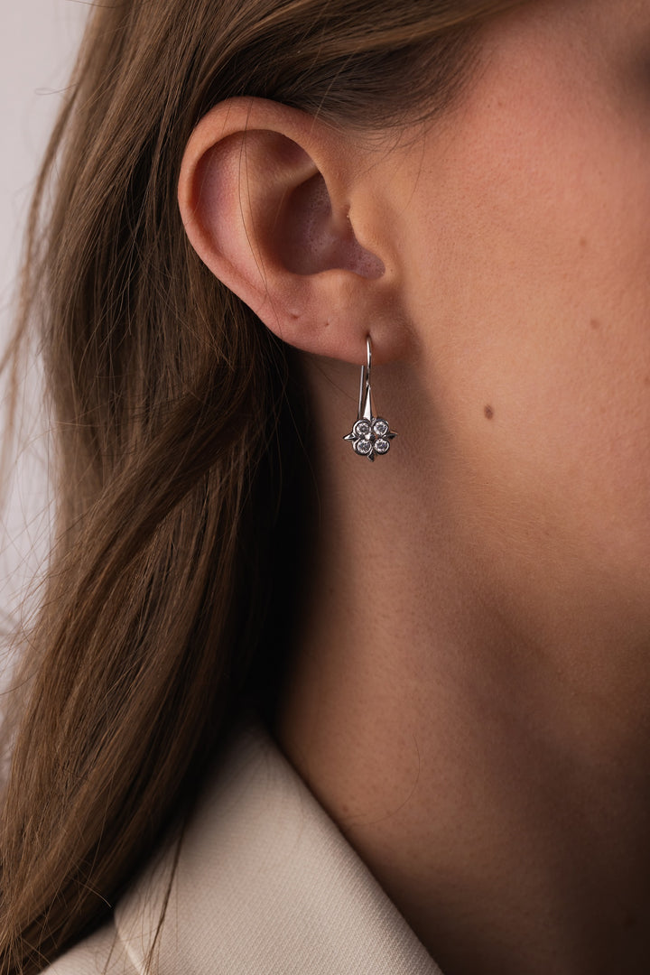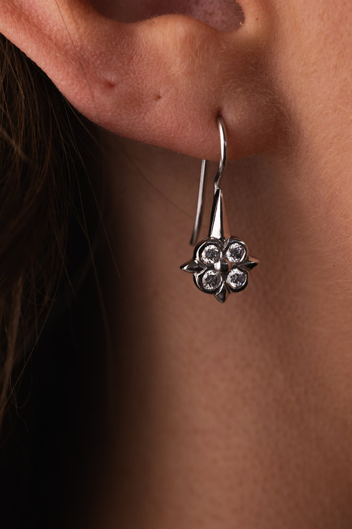 Uniquely crafted in our onsite workshop, these 18ct white gold flower drop earrings are set with 8=0.56ct FG/VS-SI round brilliant cut diamonds. Whether you’re graduating, getting married, or simply want to spoil yourself, these flower drop earrings are perfect!