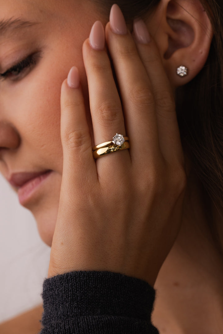 You found your perfect match, now all you need is the perfect ring! This handmade 18ct yellow gold engagement ring features a beautiful certified 0.63ct round brilliant cut diamond. Speak with our jewellers today to find out more.