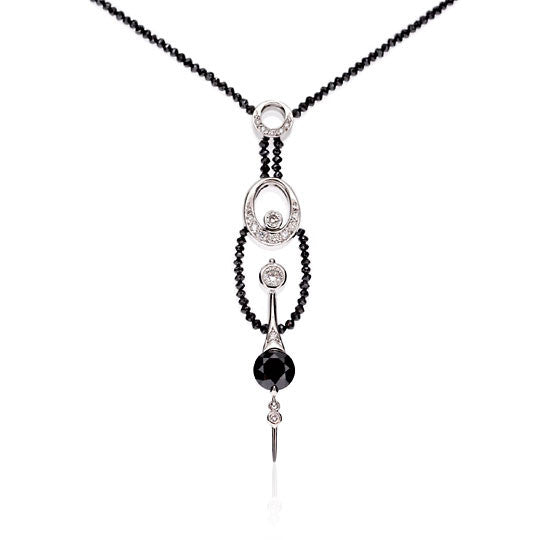 This award finalist pendant features white and black diamonds set in 18ct white gold.